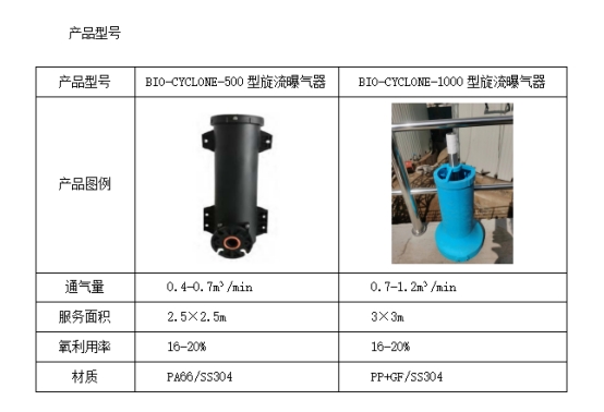 BIO- CYCLONE好氧旋流器采用超高分子混聚物制成,对一般的酸碱环境都有很高的耐受能力,大流量的压缩空气从小口径的送气管直接送进气液混合器中,经导流板后成螺旋状上升气流与混合器内的楔形物相遇被打碎形成微细气泡,细气泡再与被吸进的液体在混合空腔内充分混合,呈现螺旋喷出气液混合器,并在气液混合器周边形成强烈循环流,增加微气泡在水中的滞留时间,因为大大提高了氧的利用率,使送进的空气和池中活性污泥达到了最佳混合状态和最长的滞留时间。